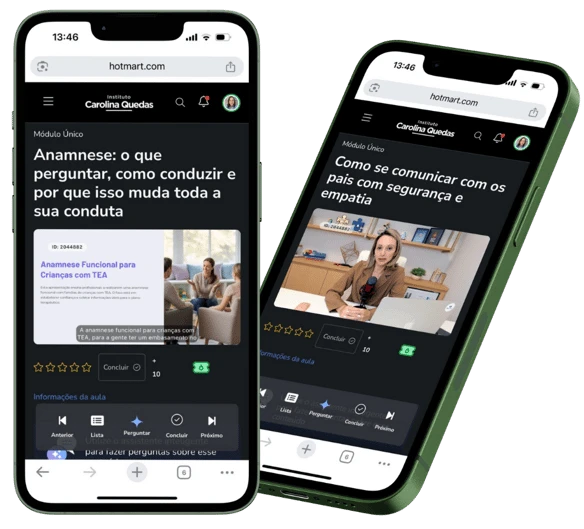 Não é teoria genérica sobre autismo. É o passo a passo para você saber exatamente o que fazer em cada momento da consulta. Conteúdo baseado em práticas baseadas em evidências e na experiência clínica da Dra. Carolina Quedas com mais de 20 anos de atuação.